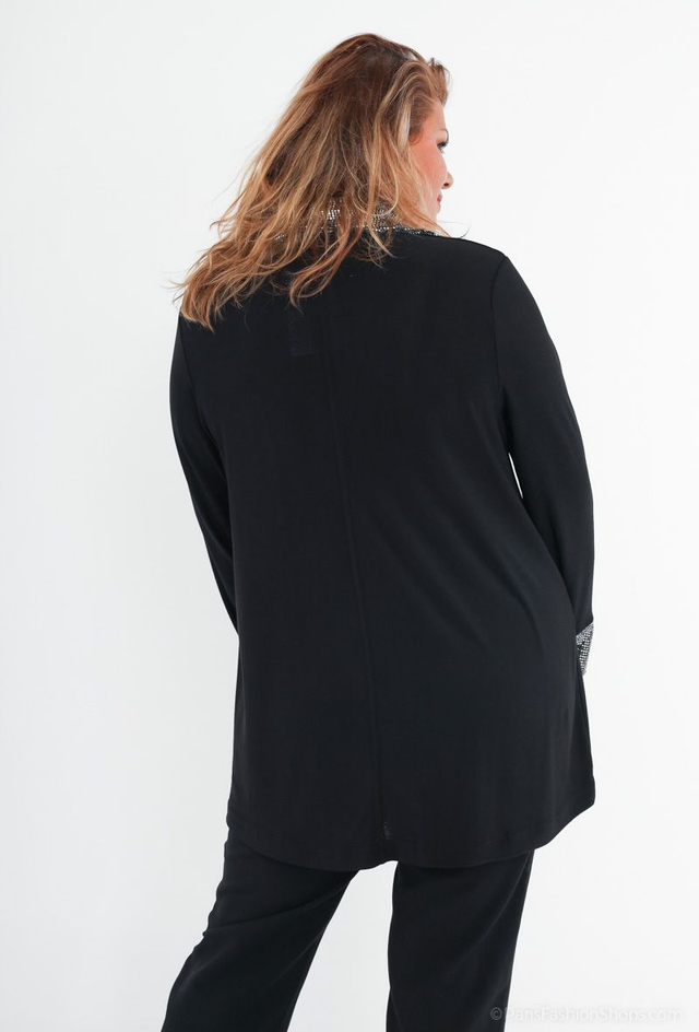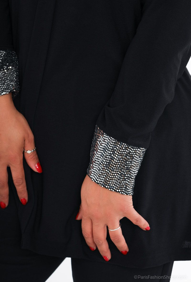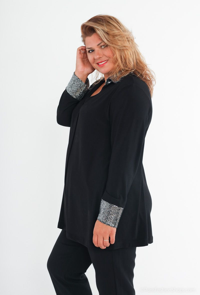 Blouse avec un col chemise et des manches avec paillette. La longueur: 82 cm.