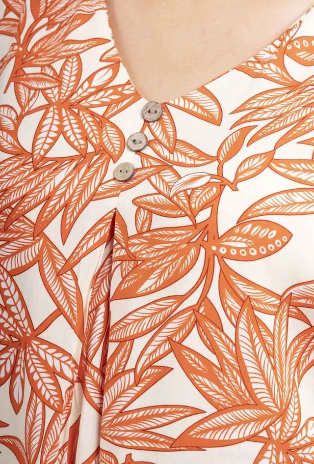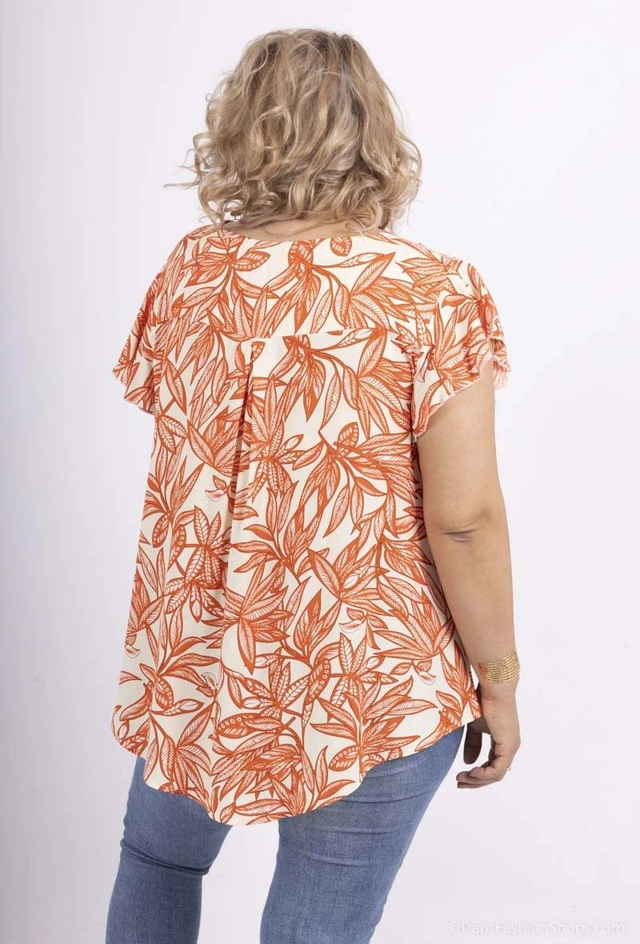 Blouse florale éclatante avec des feuilles et fleurs orange