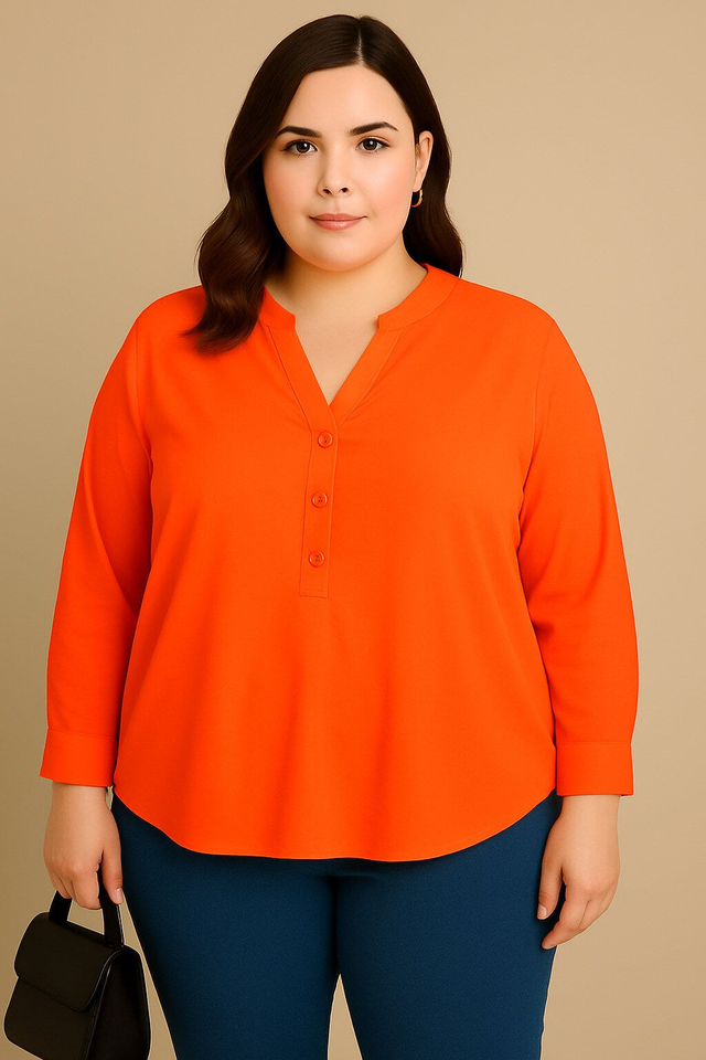 Blouse fluide & casual GT uni, manches 3/4 et retroussables.