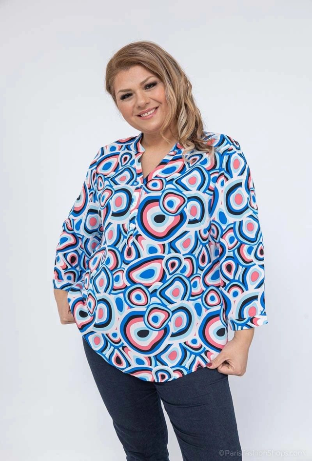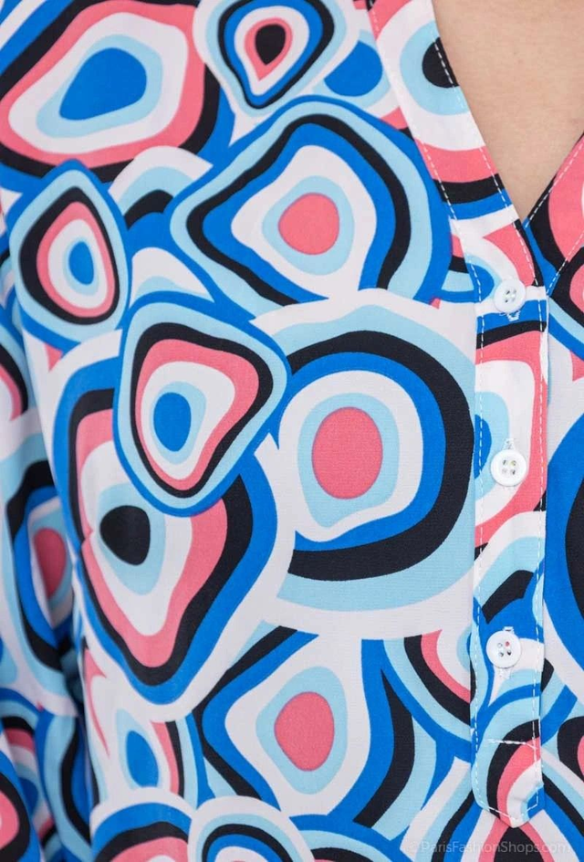 Blouse fluide & casual imprimé, manches 3/4 et retroussables.