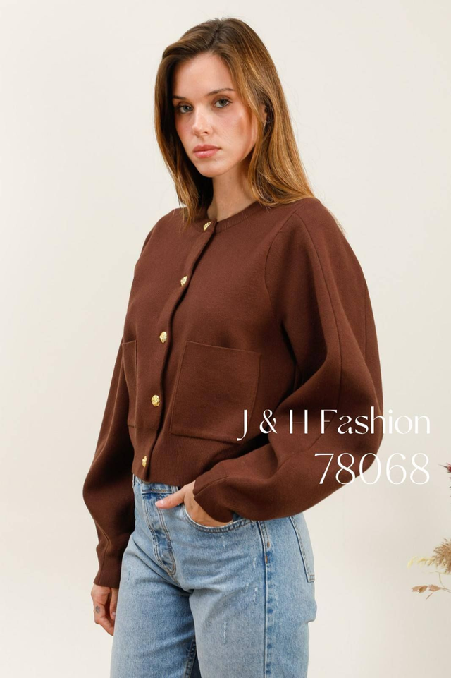Cardigan élégant en maille se distingue par ses manches ballon au volume délicat, apportant une touche féminine et tendance à votre silhouette. Il est doté de deux poches plaquées à l’avant pour un style casual-chic, tout en conservant un aspect pratique.