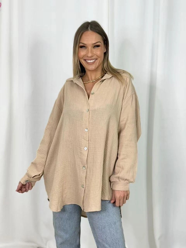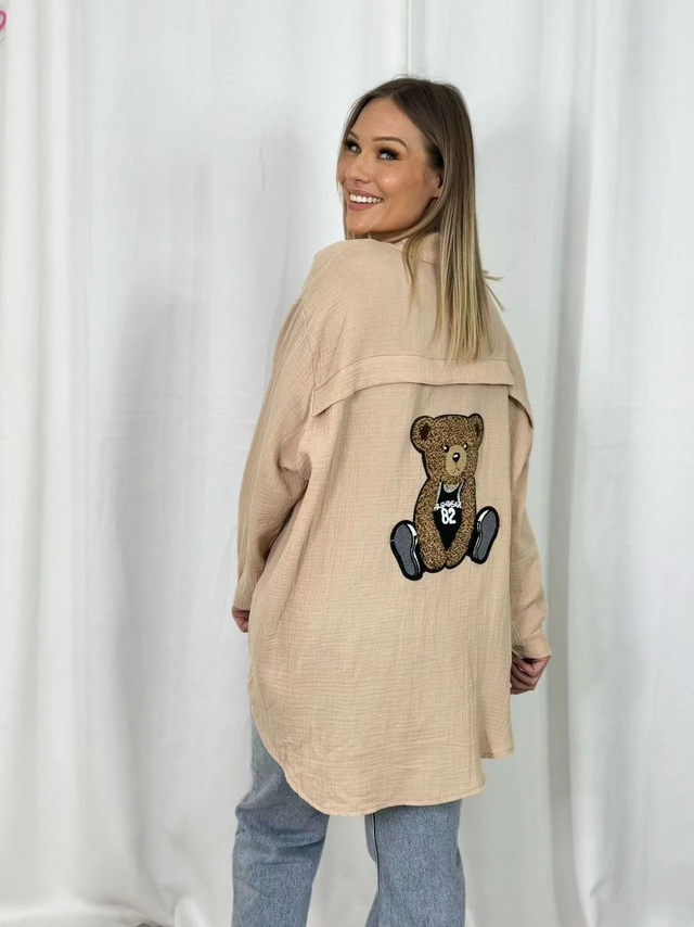 Chemise en gaze de coton écusson ourson au dos. Coupe ample.