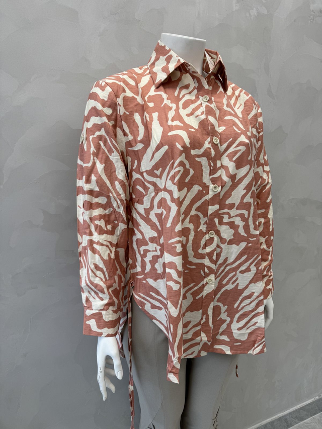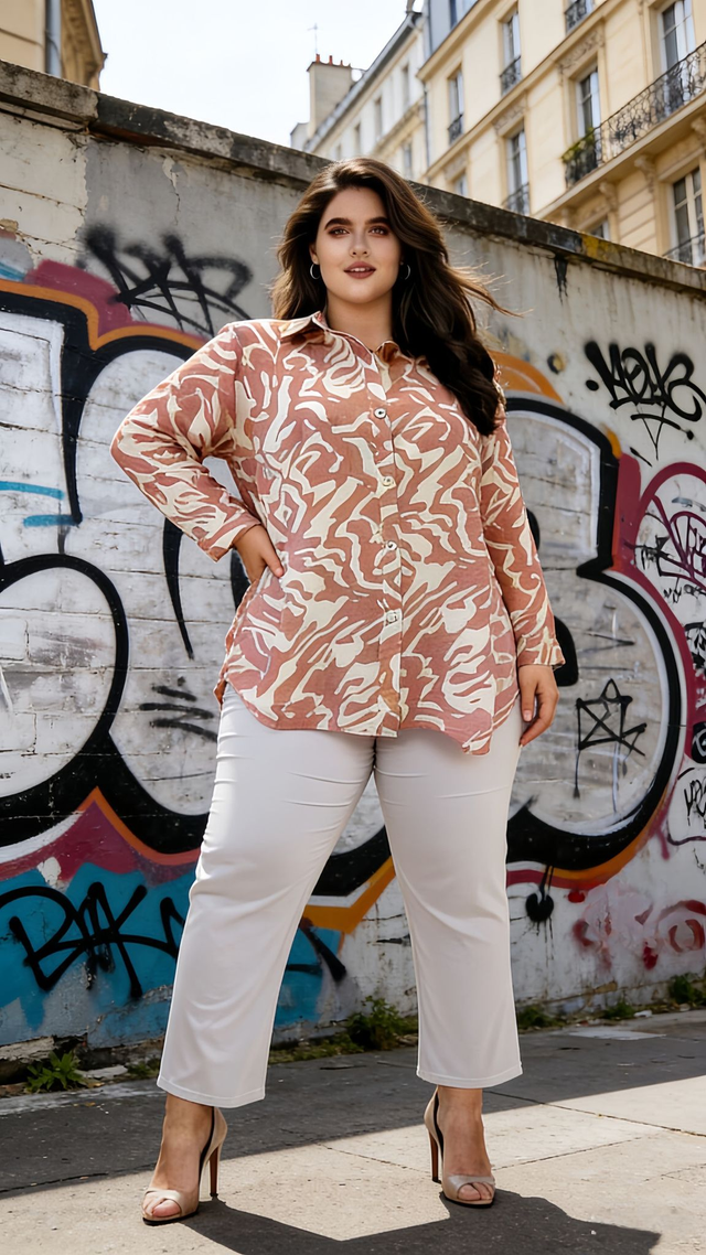 Chemise casual femme en viscose, imprimé coloré, idéale pour le printemps-été.