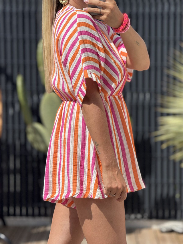 Combishort en gaze de coton respirant, idéal pour l'été. Fabriqué en Italie, parfait pour les journées ensoleillées.