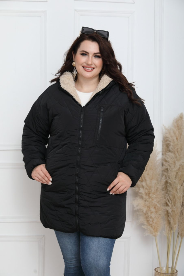 Doudoune réversible pour femme, grande taille, en polyester doux, collection Automne/Hiver, idéale pour la saison froide.