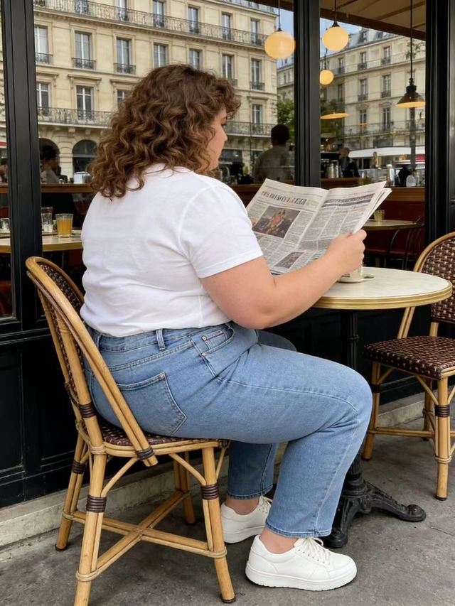 Jeans bleu clair en coupe droite.