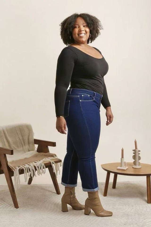 Jeans droit bleu en super size