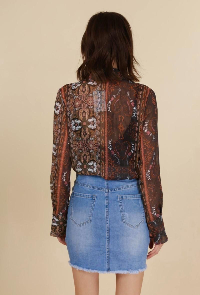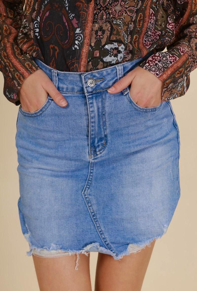 Belle petite et courte jupe déchirée en jeans. Composition: 65% Coton, 33% Polyester et 2% Elasthanne.