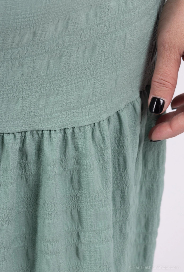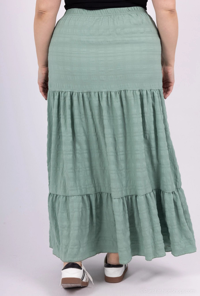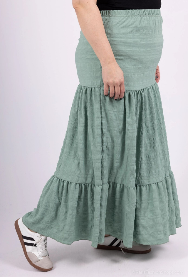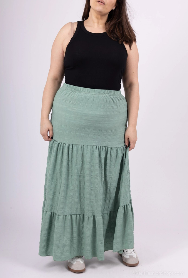 Jupe longue de couleur unie à taille haute et volants à l'ourlet.