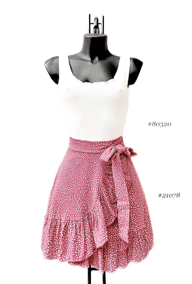 Jupe fluide à volants avec imprimé fleurs. Élastique à la taille.