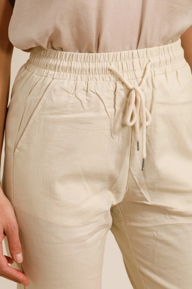 Pantalon en lin, coton et élasthanne, idéal pour le printemps/été, coupe droite confortable.