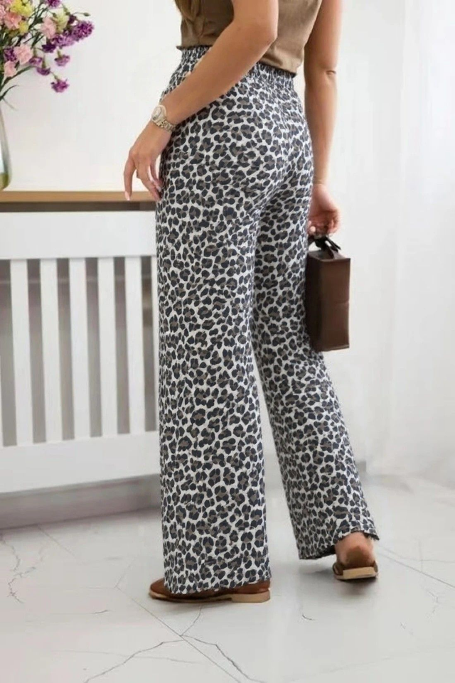 Pantalon Gaze De Coton Avec Cordon en imprimé léopard.