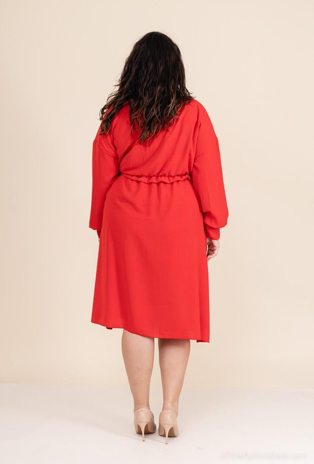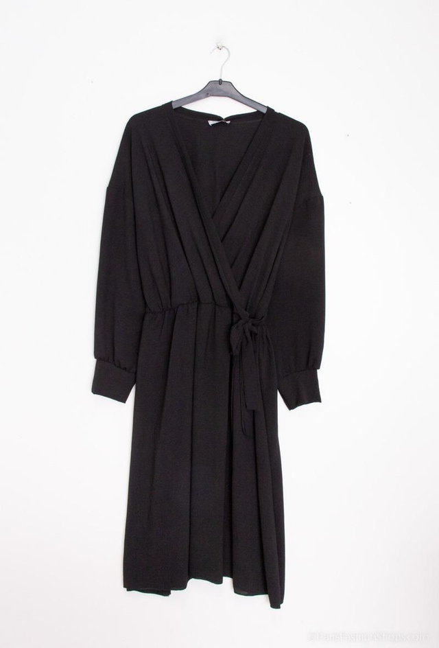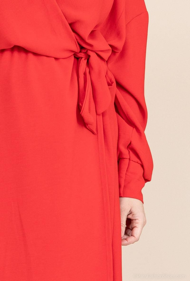 Robe en cache-coeur, ceinture et petit volant dans le dos.