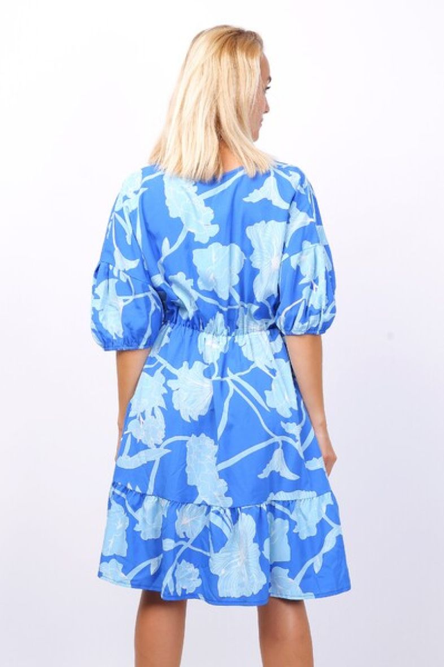 Robe fluide & casual GT manches courtes, imprimé fleurs avec bouton pression au niveau de la poitrine.