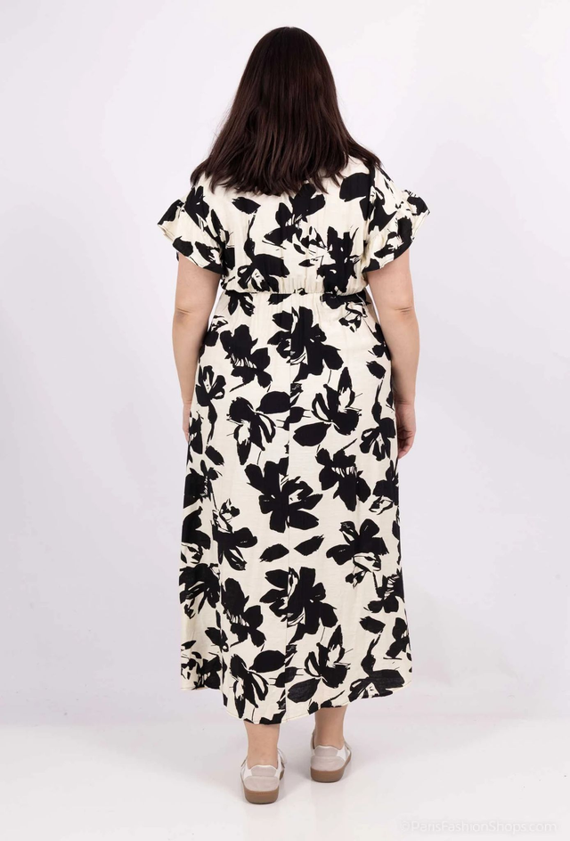 Robe longue manche courte imprimé et boutonnée