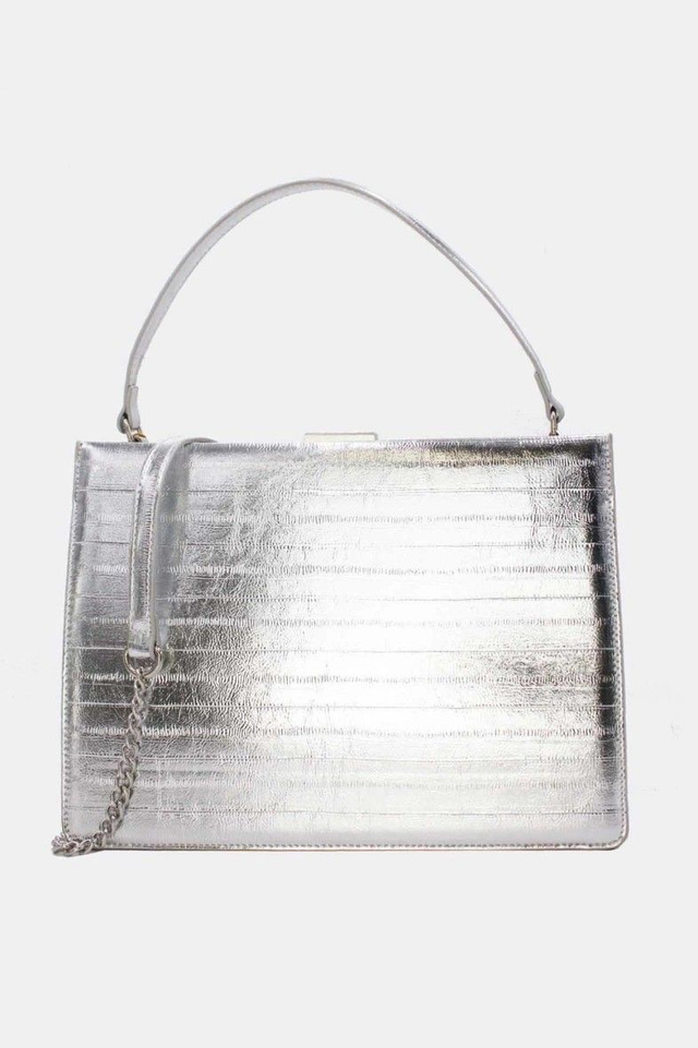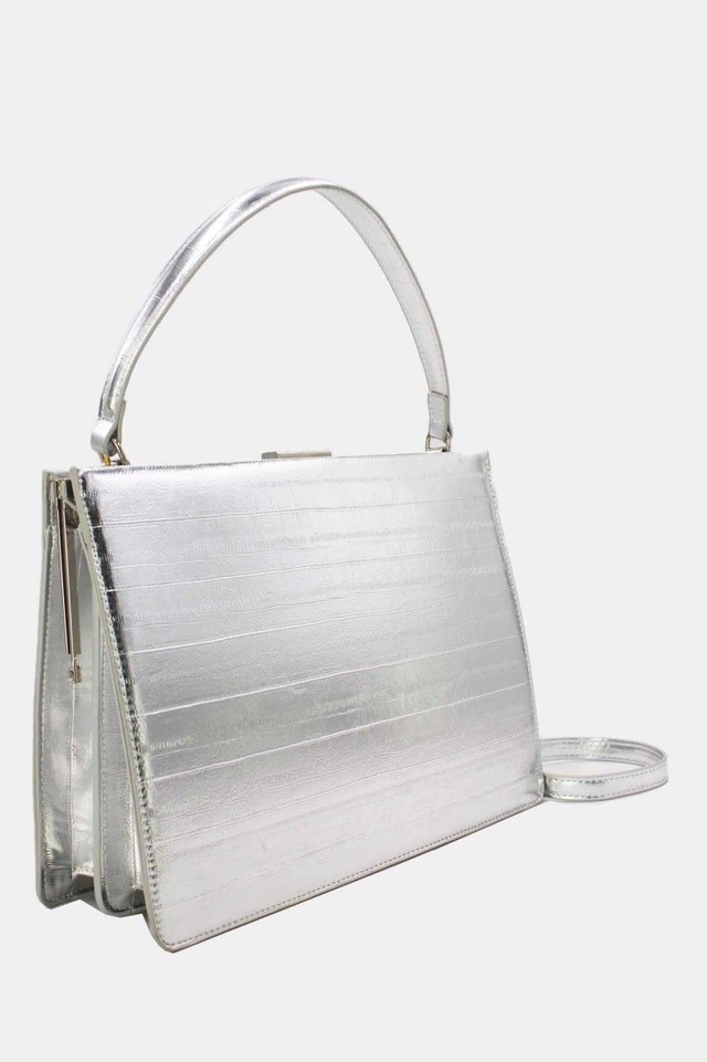 Sac à main effet croco argenté.