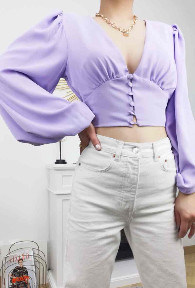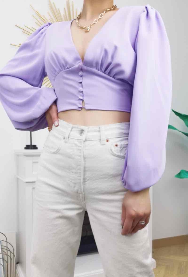 Top court avec boutons lilas