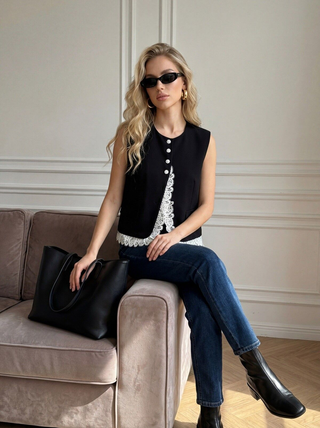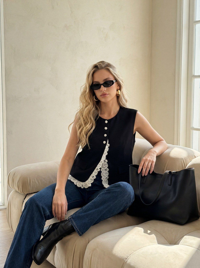 Top sans manche à dentelles, idéal pour le printemps/été, doux et extensible.